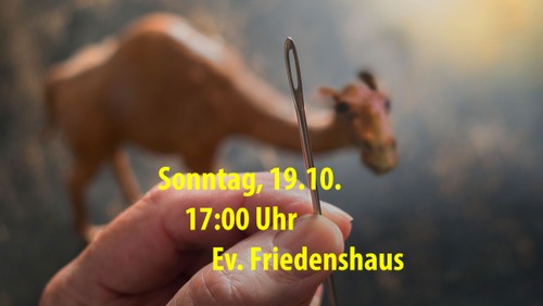 Gottesdienst am Sonntag, 19. Oktober um 17:00 Uhr im Friedenshaus Appelhülsen - Was hat ein Kamel mit einem Nadelöhr zu tun?